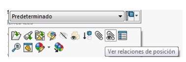 Utilice “Ver relaciones de posición” o expanda el componente en el gestor de diseño del FeatureManager mediante Visualización del gestor de diseño, Ver relaciones de posición y dependencias para ver las relaciones de posición de componentes.