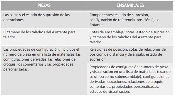 Configuraciones de SOLIDWORKS y sus utilidades. Recuerda que las configuraciones permiten crear múltiples variaciones de diseño de un modelo de pieza o ensamblaje dentro de un único documento. Proporcionan una manera conveniente de desarrollar y gestionar familias de modelos con distintas cotas, componentes u otros parámetros.