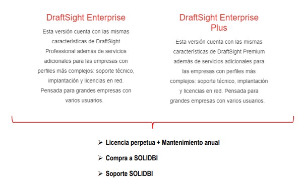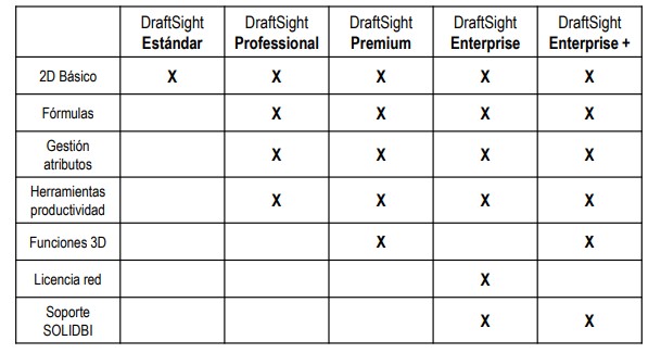 4. Valorar las necesidades de uso. Acudir a la matriz de producto en https://solid-bi.es/draftsight/.
