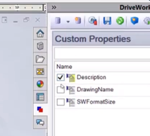 • Abre un archivo de pieza, ensamblaje o plano y, en la pestaña de DRIVEWORKS, tendrás que ir al menú inferior donde podrás ver el botón de “Custom Properties”