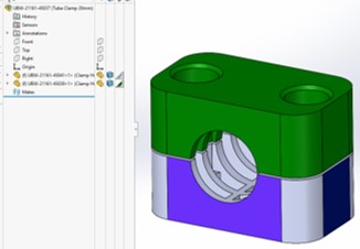En este caso, tenemos un sub ensamblaje con dos piezas, con diferentes apariencias, a nivel de pieza, y a nivel de caras.